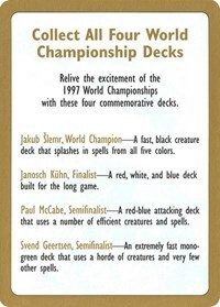 Relive the excitement of the 1997 World Championships with these four commemorative decks.