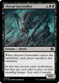 When Abyssal Gorestalker enters the battlefield each player sacrifices two creatures.