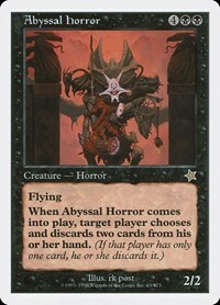 When Abyssal Horror comes into play, target player chooses and discards two cards from his or her hand. (If that player has only one card, he or she discards it.)