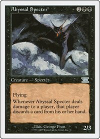 Whenever Abyssal Specter deals damage to a player, that player discards a card from his or her hand.