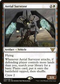 Whenever Aerial Surveyor attacks, if defending player controls more lands than you, search your library for a basic Plains card, put it onto the battlefield tapped, then shuffle.