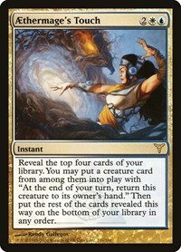 Reveal the top four cards of your library. You may put a creature card from among them into play with "At the end of your turn, return this creature to its owner's hand." Then put the rest of the cards revealed this way on the bottom of your library in any order.
