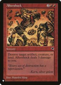 Destroy target artifact, creature, or land. Aftershock deals 3 damage to you.