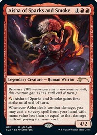 (R/W): Aisha of Sparks and Smoke gains first strike until end of turn.