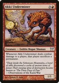 Whenever Akki Underminer deals combat damage to a player, that player sacrifices a permanent.