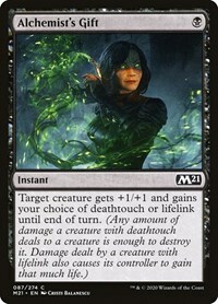 Traget creature gets +1/+1 and gains your choice of deathtouch or lifelink until end of turn. (Any amount of damage a creature with deathtouch deals to a creature is enough to destroy it. Damage dealt by a creature with lifelink also causes its controller to gain that much life.)