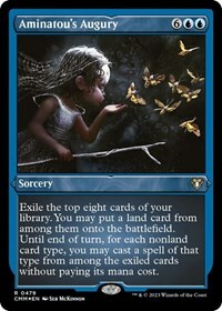 Exile the top eight cards of your library. You may put a land card from among them onto the battlefield. Until end of turn, for each nonland card type, you may cast a spell of that type from among the exiled cards without paying its mana cost.