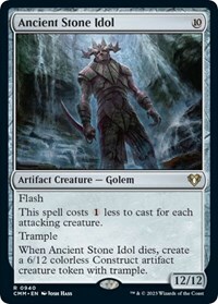 When Ancient Stone Idol dies, create a 6/12 colorless Construct artifact creature token with trample.