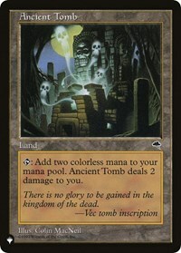 T: Add two colorless mana to your mana pool. Ancient Tomb deals 2 damage to you.
