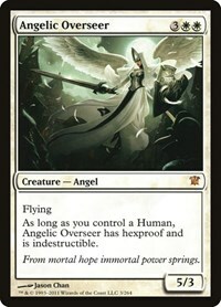 As long as you control a Human, Angelic Overseer has hexproof and is indestructible.