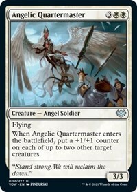 When Angelic Quartermaster enters the battlefield, put a +1/+1 counter on each of up to two other target creatures.