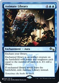 If enchanted library would leave the battlefield, exile Animate Library instead.