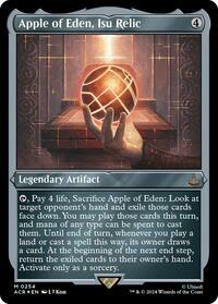 T, Pay 4 life, Sacrifice Apple of Eden: Look at target opponent’s hand and exile those cards face down. You may play those cards this turn, and mana of any type can be spent to cast them. Until end of turn, whenever you play a land or cast a spell this way, its owner draws a card. At the beginning of the next end step, return the exiled cards to their owner’s hand. Activate only as a sorcery.