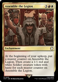 At the beginning of your upkeep, put a muster counter on Assemble the Legion. Then create a 1/1 red and white Soldier creature token with haste for each muster counter on Assemble the Legion.