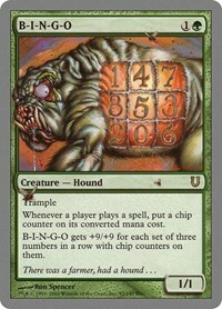 B-I-N-G-O gets +9/+9 for each set of three numbers in a row with chip counters on them.
