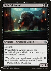 When Baleful Ammit enters the battlefield, put a -1/-1 counter on target creature you control.