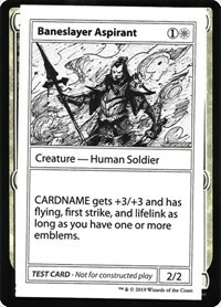 CARDNAME gets +3/+3 and has flying, first strike, and lifelink as long as you have one or more emblems.