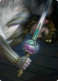 Whenever you cast a historic spell, draw a card. Basim Ibn Ishaq can’t be blocked this turn. This ability triggers only once each turn.