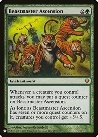Whenever a creature you control attacks, you may put a quest counter on Beastmaster Ascension.