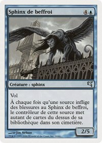 Whenever a source deals damage to Belltower Sphinx, that source’s controller puts that many cards from the top of his or her library into his or her graveyard.