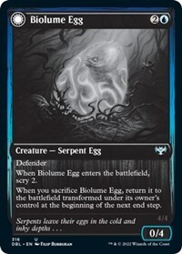When you sacrifice Biolume Egg, return it to the battlefield transformed under its owner's control at the beginning of the next end step.