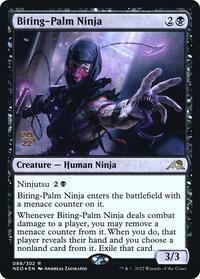 Biting-Palm Ninja enters the battlefield with a menace counter on it.