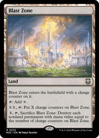 Blast Zone enters the battlefield with a charge counter on it.