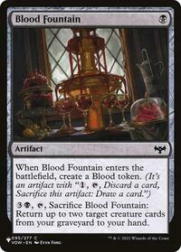 When Blood Fountain enters the battlefield, create a Blood token. (It's an artifact with "1, T, Discard a card, Sacrifice this artifact: Draw a card.")
