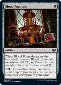 When Blood Fountain enters the battlefield, create a Blood token. (It's an artifact with "1, T, Discard a card, Sacrifice this artifact: Draw a card.")