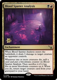 Whenever one or more creatures die, mill a card and put a bloodstain counter on Blood Spatter Analysis. Then sacrifice it if it has five or more bloodstain counters on it. When you do, return target creature card from your graveyard to your hand.