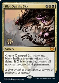 Create X tapped 2/1 white and black Inkling creature tokens with flying. If X is 6 or more, destroy all noncreature, nonland permanents.