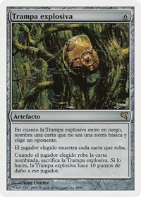 When the chosen player draws the named card, sacrifice Booby Trap. If you do, Booby Trap deals 10 damage to that player.