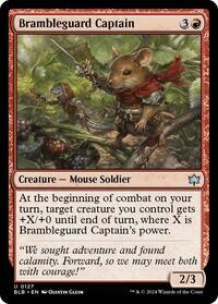 At the beginning of combat on your turn, target creature you control gets +X/+0 until end of turn, where X is Brambleguard Captain's power.