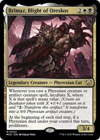 Whenever you cast a Phyrexian creature or artifact spell, incubate X, where X is that spell's mana value. (Create an Incubator token with X +1/+1 counters on it and "2: Transform this artifact." It transofrms into a 0/0 Phyrexian artifact creature.)