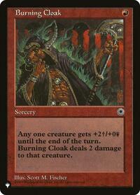 Any one creature gets +2/+0 until the end of the turn.Burning Cloak deals 2 damage to that creature.