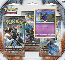 Each 3 Pack Blister Comes With 3 Burning Shadows Booster Packs, 1 Coin, And A Cosmos Holofoil Of Cosmog.