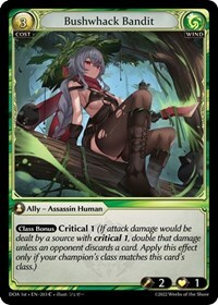 [Class Bonus] Critical 1 (If attack damage would be dealt by a source with critical 1, double that damage unless an opponent discards a card. Apply this effect only if your champion's class matches this card's class.)