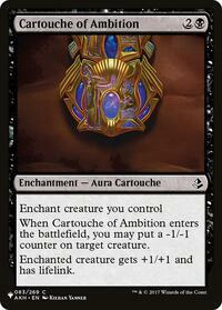 When Cartouche of Ambition enters the battlefield, you may put a -1/-1 counter on target creature.