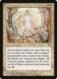 All nonland cards you own that are not in play are white. All nonland permanents you control are white. All lands you control are plains. All colored mana symbols in all costs on all of these cards and permanents are W.