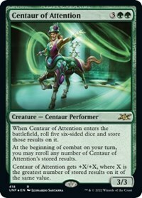 At the beginning of combat on your turn, you may reroll any number of Centaur of Attention’s stored results.