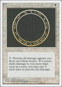 1: Prevent all damage against you from one black source. If a source deals damage to you more than once in a turn, you may pay 1 each time to prevent the damage.