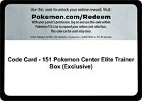 Code Card - 151 Pokemon Center Elite Trainer Box (exclusive)