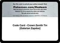 Code Card - Crown Zenith Tin [galarian Zapdos]