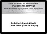 Code Card - Sword & Shield 3 Pack Blister [galarian Ponyta]