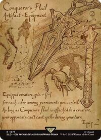 As long as Conqueror's Flail is attached to a creature, your opponents can't cast spells during your turn.