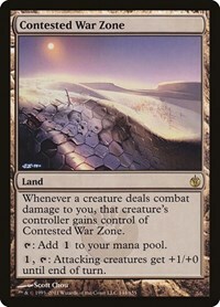 Whenever you are dealt combat damage by a creature, that creature's controller gains control of Contested War Zone.