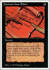 Discard your current hand and draw eight new cards, adding the first drawn to your ante. Remove this card from your deck before playing if you are not playing for ante.
