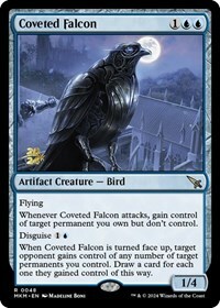 Whenever Coveted Falcon attacks, gain control of target permanent you own but don't control.
