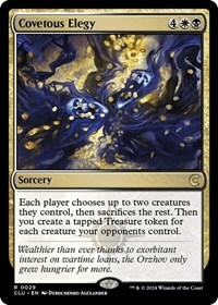 Each player chooses up to two creatures they control, then sacrifices the rest. Then you create a tapped Treasure token for each creature your opponents control.