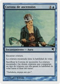Sacrifice Crown of Ascension: Enchanted creature and other creatures that share a creature type with it gain flying until end of turn.